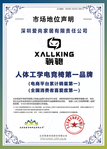 在专业电竞装备领域,骁骑的人体工学电竞椅实力已获得来自市场、行业与专业机构的多重验证。基于对电竞玩家长期久坐场景的系统研究,骁骑不仅被第三方市场研究机构认定为“人体工学电竞椅第一品牌”,在主流电商平台实现累计销量与消费者喜爱度双领先,同时还凭借其在结构设计与智能化应用上的创新能力,被认定为“智能电竞椅首创品牌”。